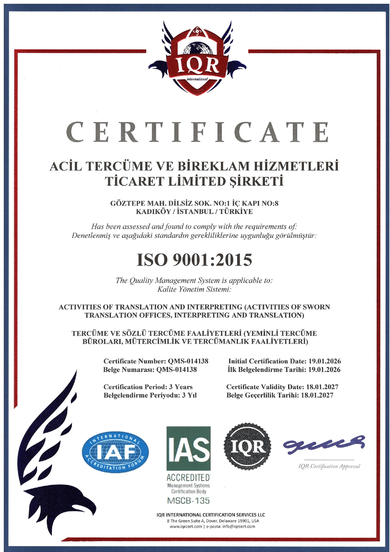 Cevizlik Mah. Fahri Korutürk Cad. No: 40 Ali Işık İş Hanı Kat 1 D: 8, 34142 Bakırköy/İstanbul